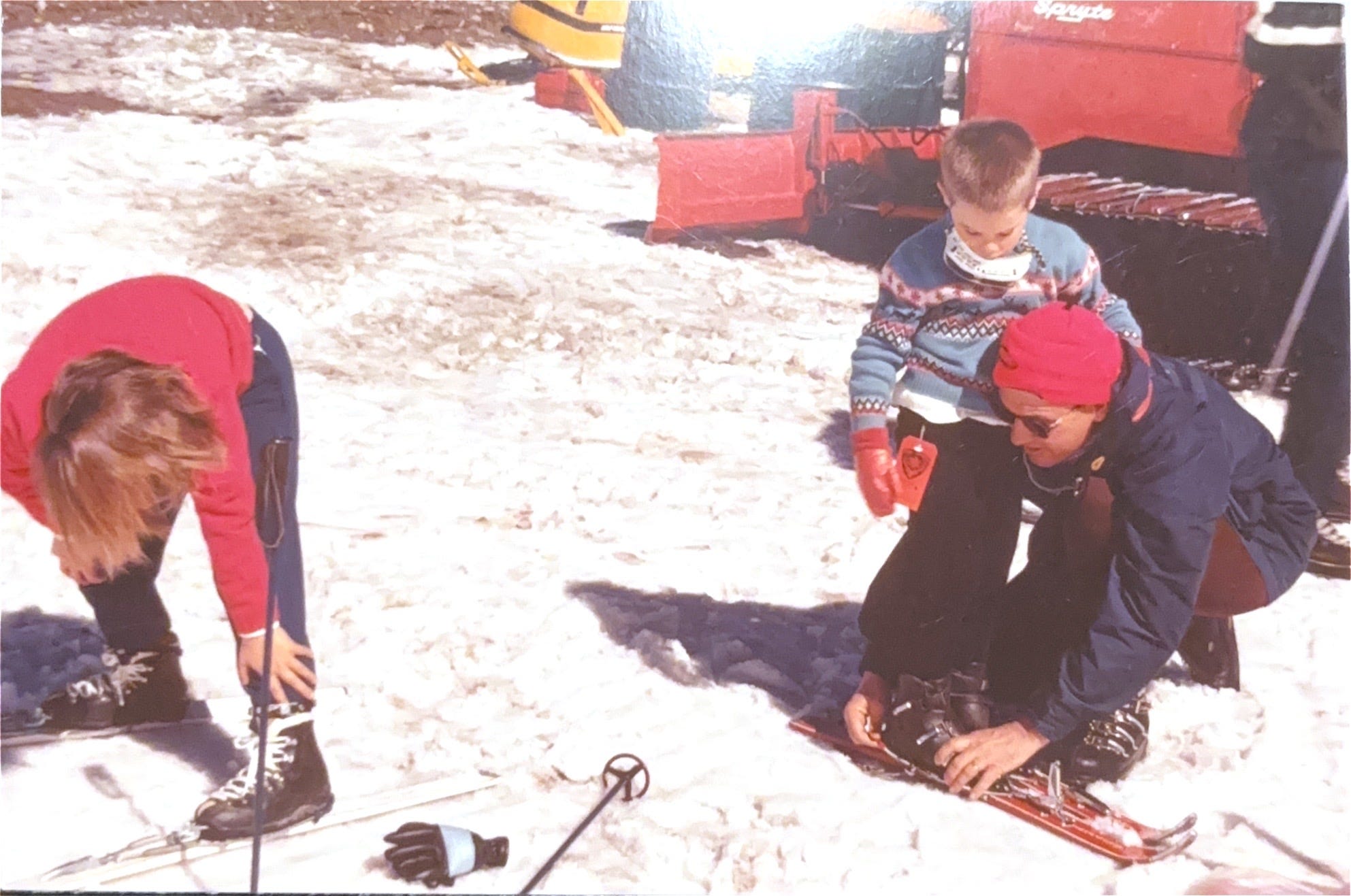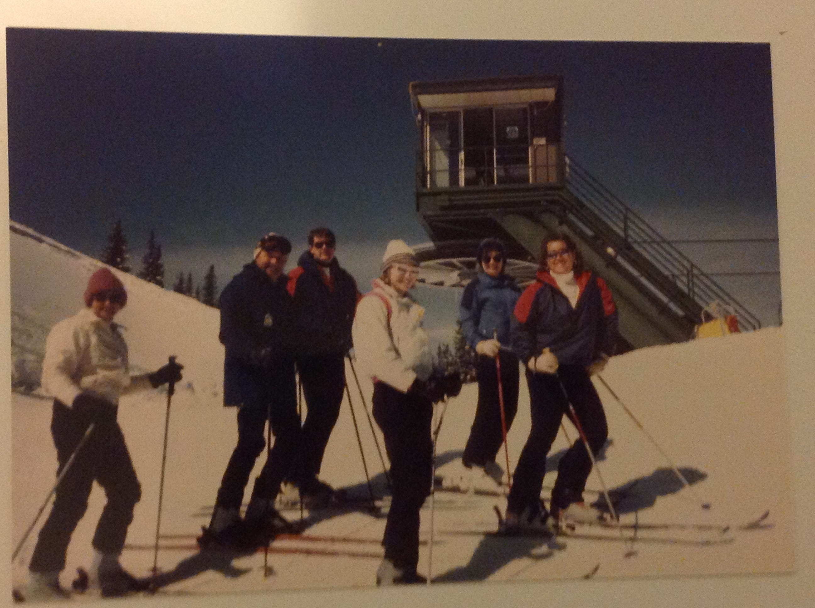 You can’t see my face in this photo, but there is a lot going on. Notice the leather lace-up boots and wooden skies from the 1960’s! My dad is about to get super mad because I’m telling him (after he finally got us ready to ski) that I have to go to the bathroom. And yet, we all loved skiing so much. Ski trips are some of my very favorite childhood memories! This was taken at June Mountain where I am also skiing this week!